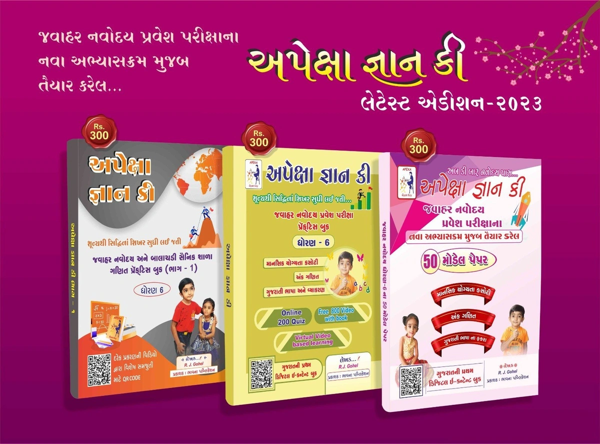 બુકની વિશેષતાnnAPEXA GYANnnતમામ પ્રકરણની બાળકોને સમજાય તેવી સરળ ભાષામાં સમજુતી,nnબાળક જાતે જ પરીક્ષાની તૈયારી કરી શકે તેવી સરળ શૈલીમાં રજૂઆત,nnદરેક પ્રકરણમાં ટોપીક મુજબ દાખલાઓનો મહાવરો.nnપ્રત્યેક પ્રકરણ દીઠ આશરે 150 થી વધુ દાખલાઓનો સમાવેશ.nnપ્રેકિટસ માટે બુકમાં આશરે 4000 થી વધુ દાખલાઓનો સમાવેશ.nnઇ-કન્ટેન્ટ માટે 700 થી પણ વધુ QR CODE યુકત વિડીયો કે જેમાં આશરે 7000 દાખલાઓનો સમાવેશ.nnજવાહર નવોદયની અગાઉના 30 વર્ષની પરીક્ષામાં પૂછાયેલા પ્રશ્નોનું પ્રકરણ વાઇઝ સંકલન.nnજવાહર નવોદયની પ્રવેશ પરીક્ષાની વધુ પ્રેકિટસ માટે 100 DIGITAL TEST FREEnnસૈનિક સ્કૂલની છઠ્ઠા ધોરણની તથા NMMSની પરીક્ષા માટે પણ ઉપયોગી,nnનવોદય પ્રવેશ પરીક્ષાની તૈયારી માટે દર વર્ષે સાત દિવસનો ફ્રી સેમિનાર,nnનવોદય પરીક્ષા ઉપરાંત અન્ય સ્પર્ધાત્મક પરીક્ષાઓ માટે ખૂબ જ ઉપયોગી